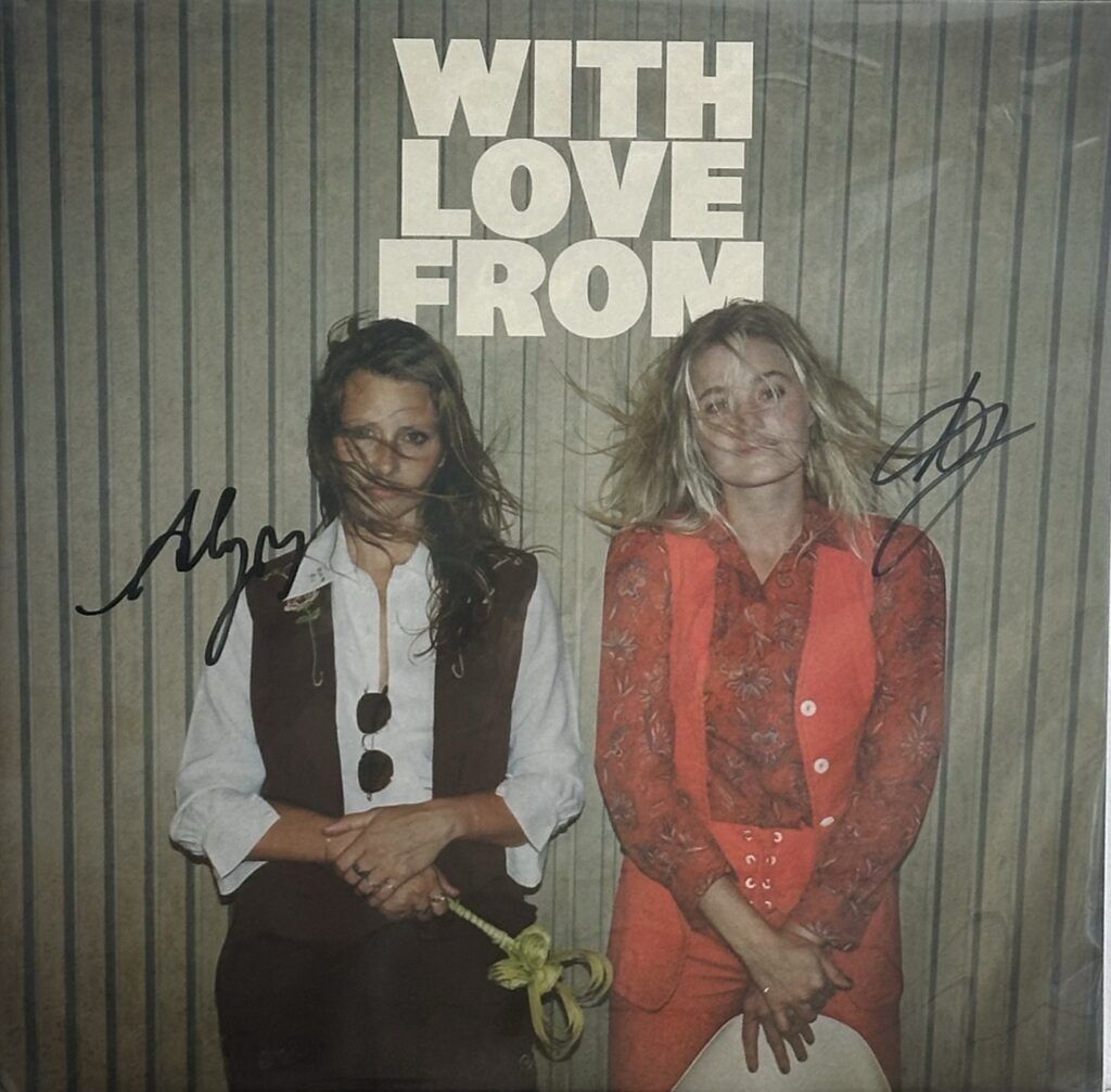 Front cover of the record is signed by both Aly & Aj. The record is brand new but not sealed due to the signatures. 2LP pressing on “Gold Rush” Gold w/ Glitter colored vinyl. Denting to the top and bottom left hand corners of the jacket. Project image of the actual copy you will receive.